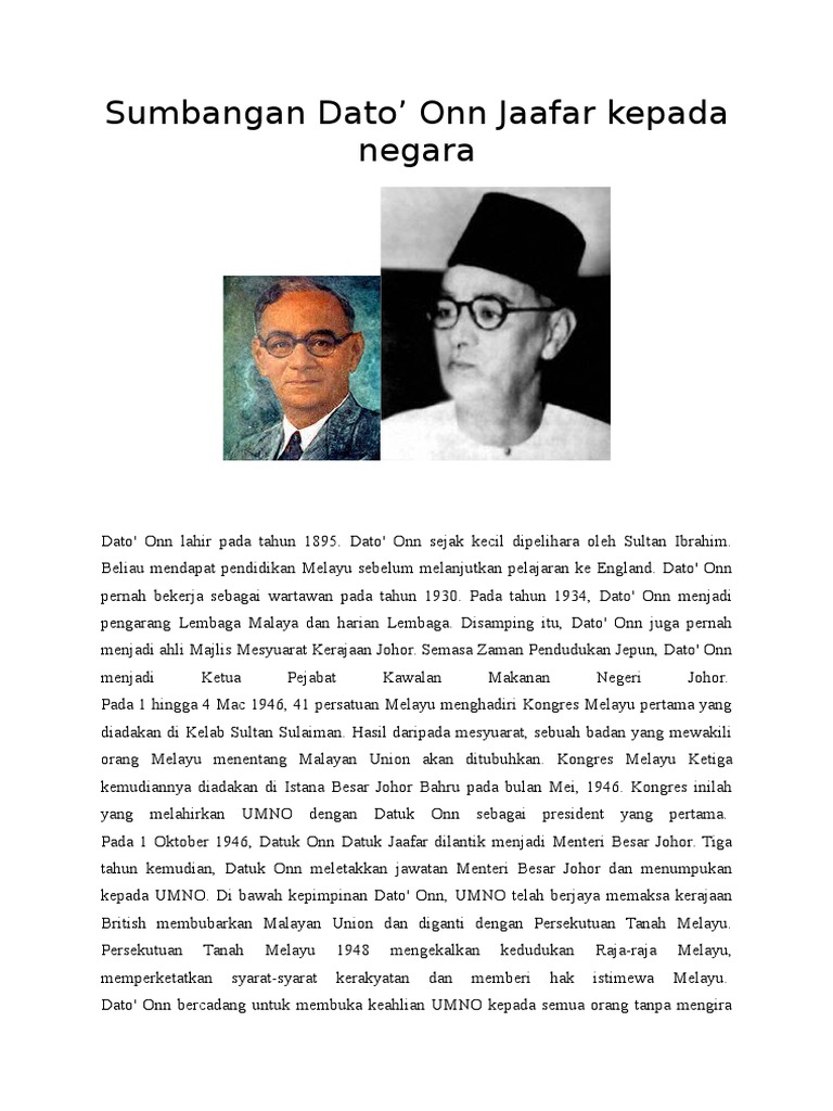 Sejarah dato onn jaafar. 1912021 Hari ini dalam sejarah. Bagaimana Sejarah Dato Onn Jaafar Dari Ahli Parlimen Batu Pahat Johor YB Dato Hj Rashid Hasnon. 2212016 Onn Jaafar Perjuangannya dan Sejarah Kita Latar belakang.